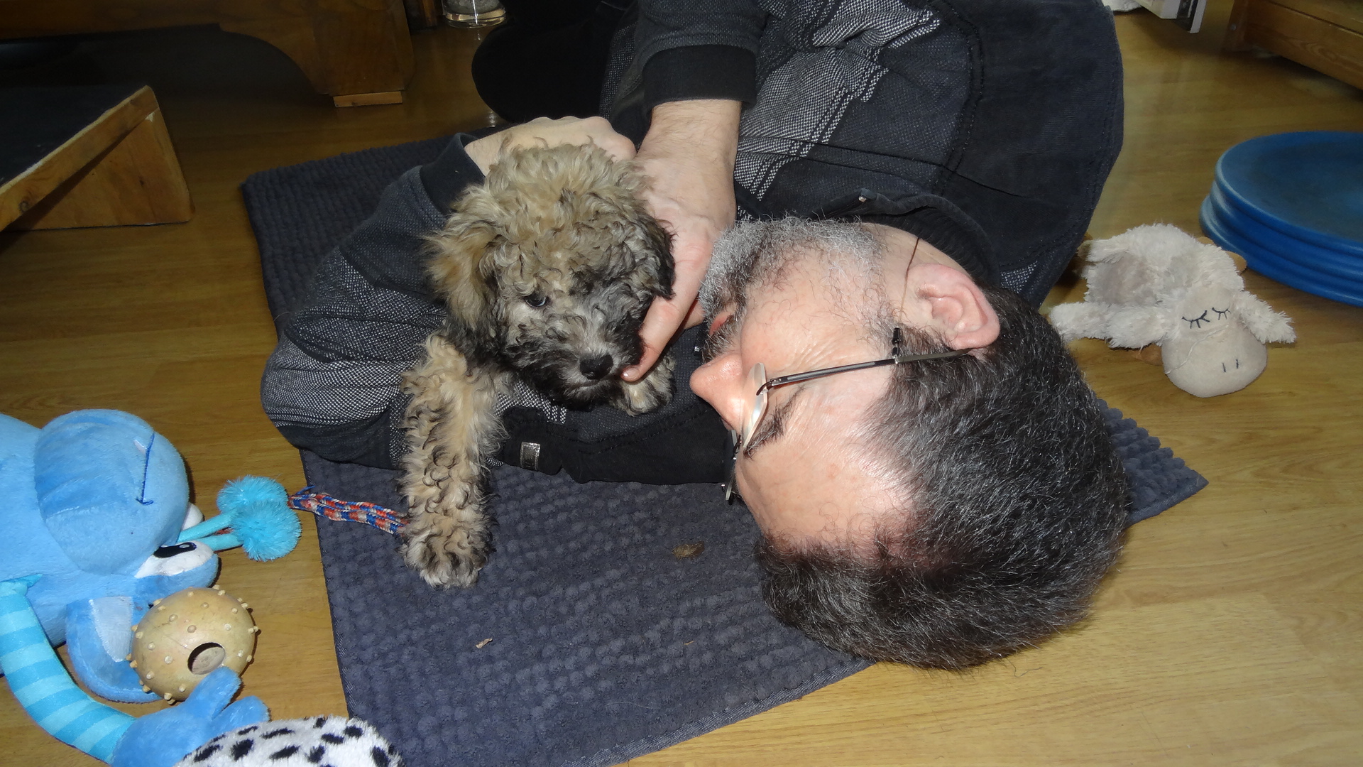 Und dann die erste einsame Nacht ohne die Geschwister für Alberich: Er hat die neue Situation richtig ausgekostet! Alle 3 Stunden mußte er sich überzeugen, dass Mama Bubbly und der Rest des Rudels noch da sind. Aber auch das haben wir gemeistert und konnten dann nur noch gemeinsam warten bis auch seine neue Familie angekommen war. Abschiedsschmuuuuusen!!!!