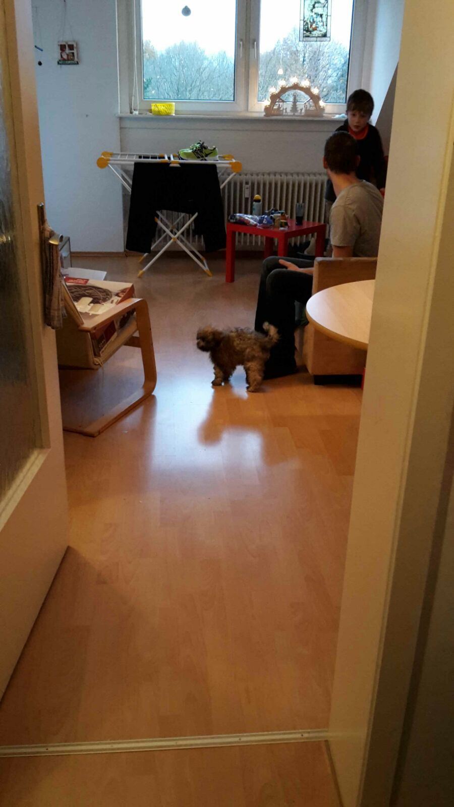 Ist ja auch für ein kleines Pulimädchen überwältigend, wenn man vom Land mal eben so ins Getümmel von Frankfurt versetzt wird. Und dann muss man sich den gesteckten Zielen wie z.B. „der Hund kommt nicht auf die Couch“ etc. stellen. Aber wer einen Puli kennt der weis, dass sie einen ganz schnell um die Pfote wickeln! Nun – nur so viel: es hat keine 24 Stunden gedauert und: seht selbst!