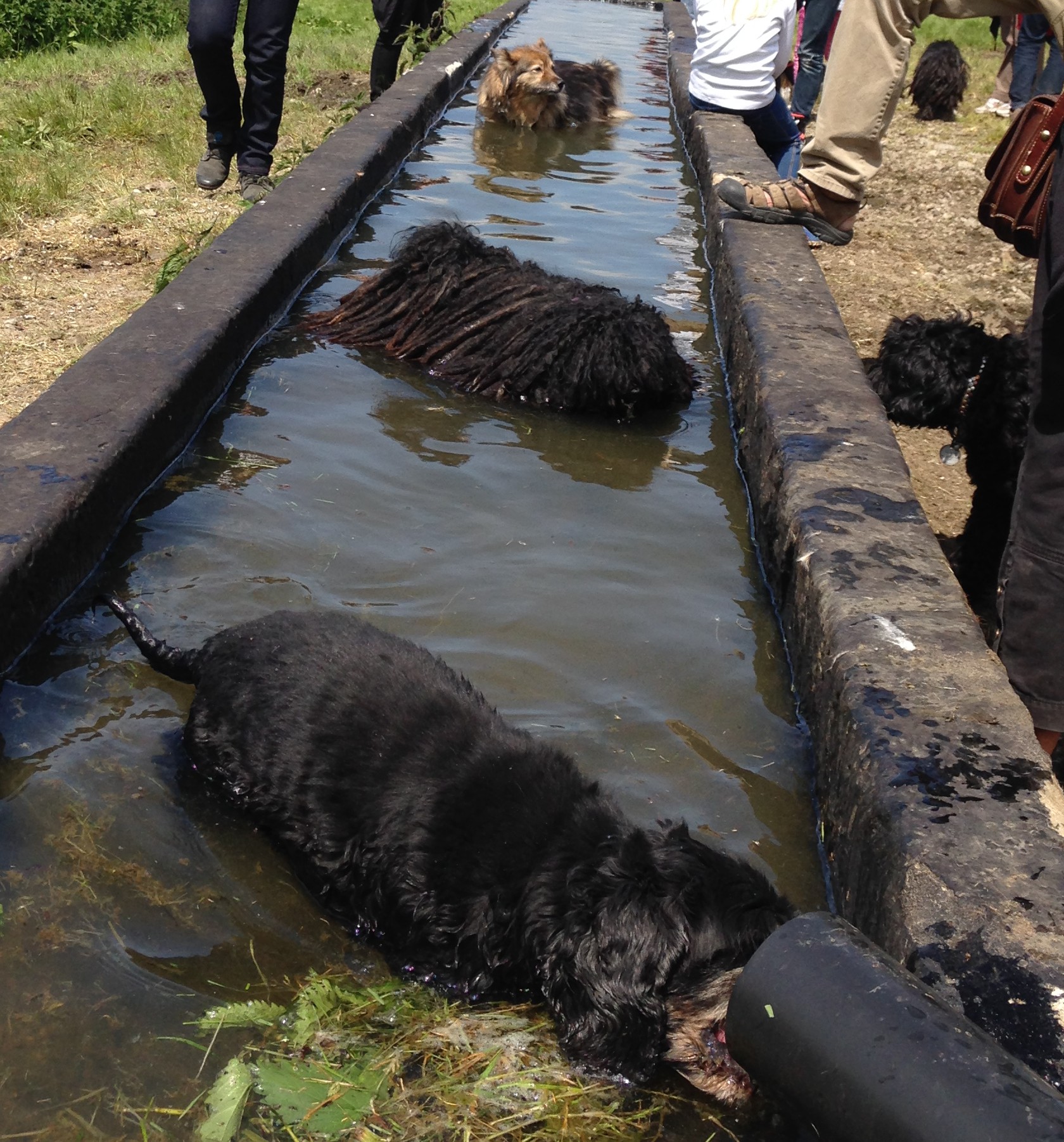 Wasser aus der Kuhtränke schmeckt auch den Pulis oder lädt manche sogar zum schwimmen ein.