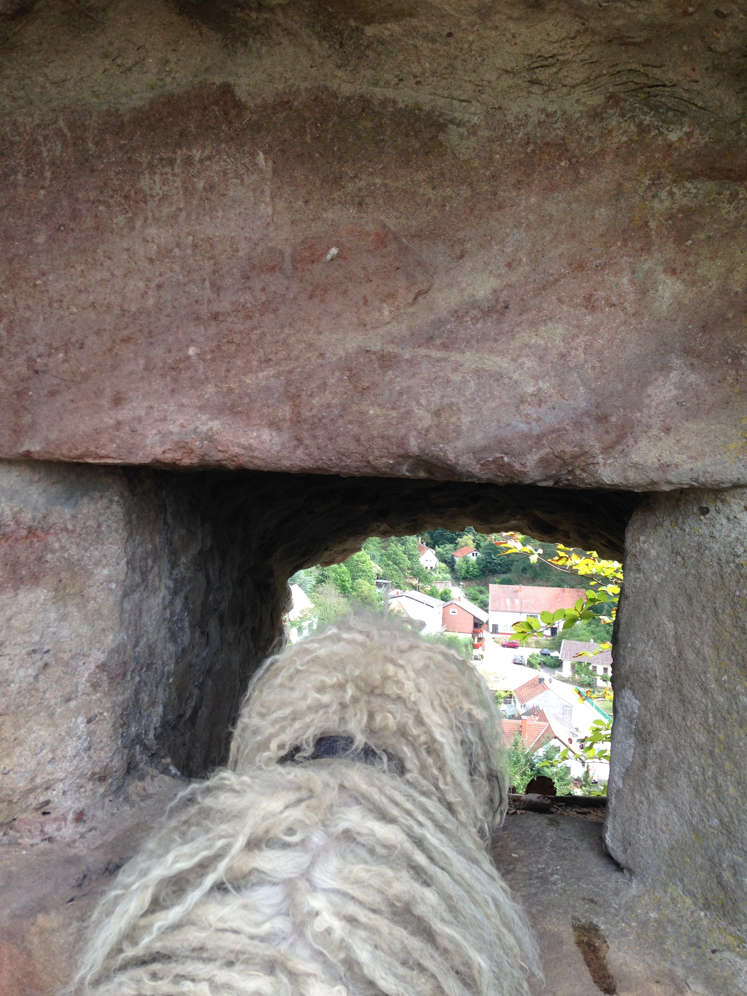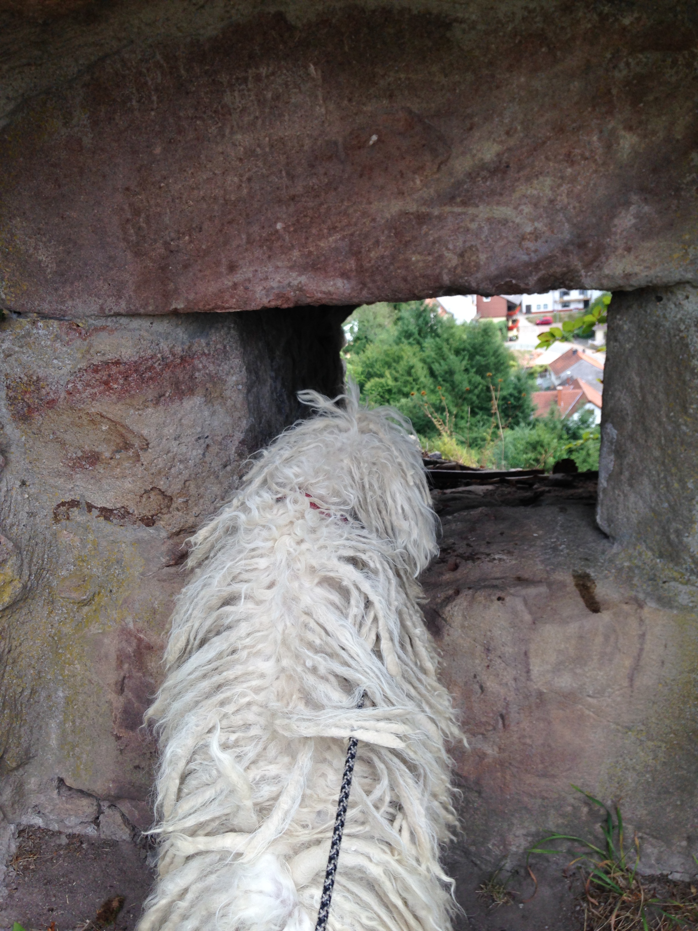 Aber dann wollen wir (Bubbly, Chili Frauchen und Herrchen sowie unser „Opa“) auf den Turm,  von da hat man sicherlich  herrliche Blicke ins Umland. Herrchen jetzt aber schnell!!!!