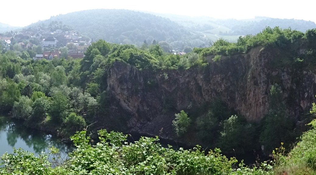 dem Startpunkt unserer Tour nach 11,1 km und 381 Höhenmetern entgegen und zurück zu dem imposanen alten Steinbruch im Naturschutzgebiet am Vogelsang.