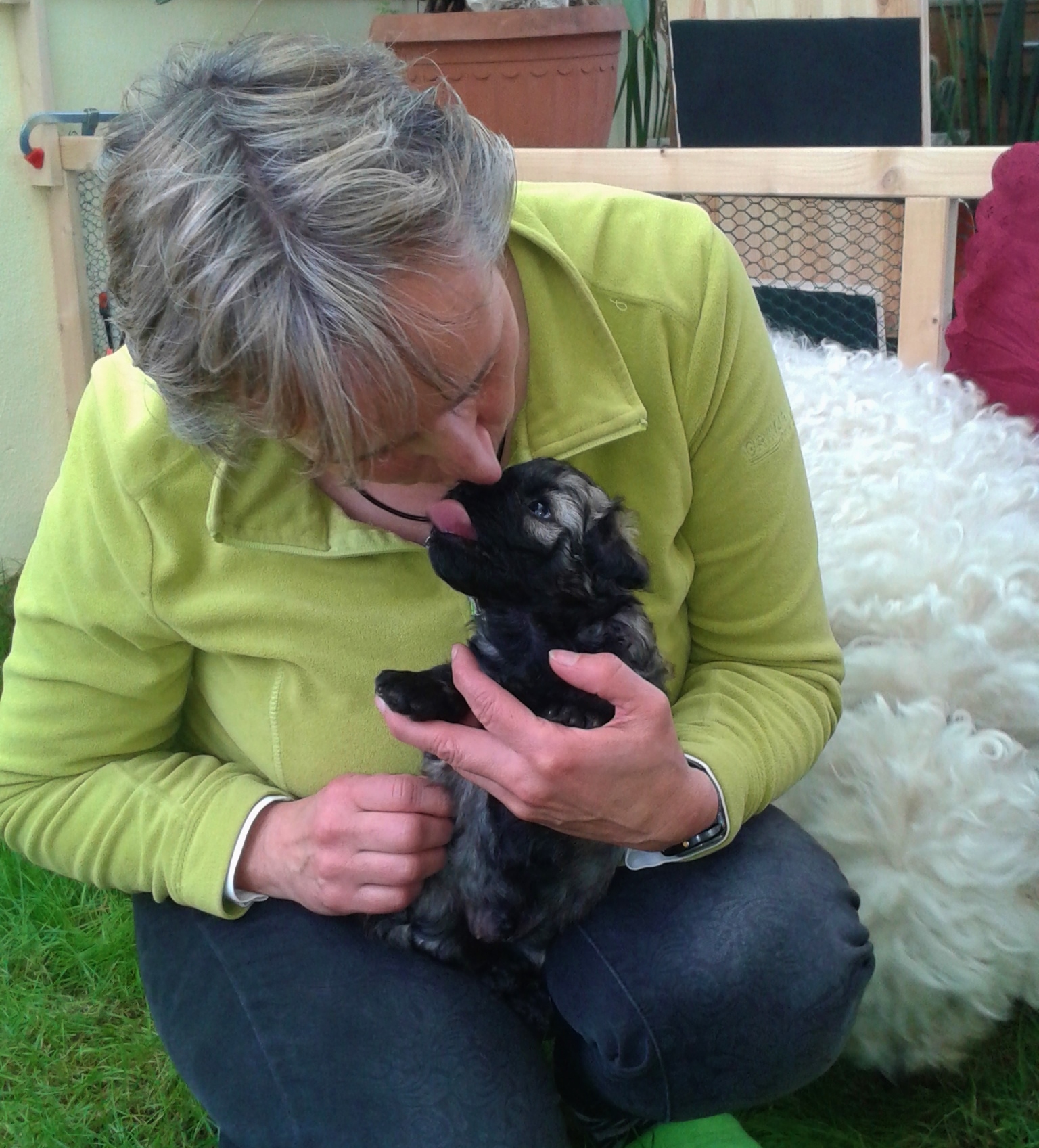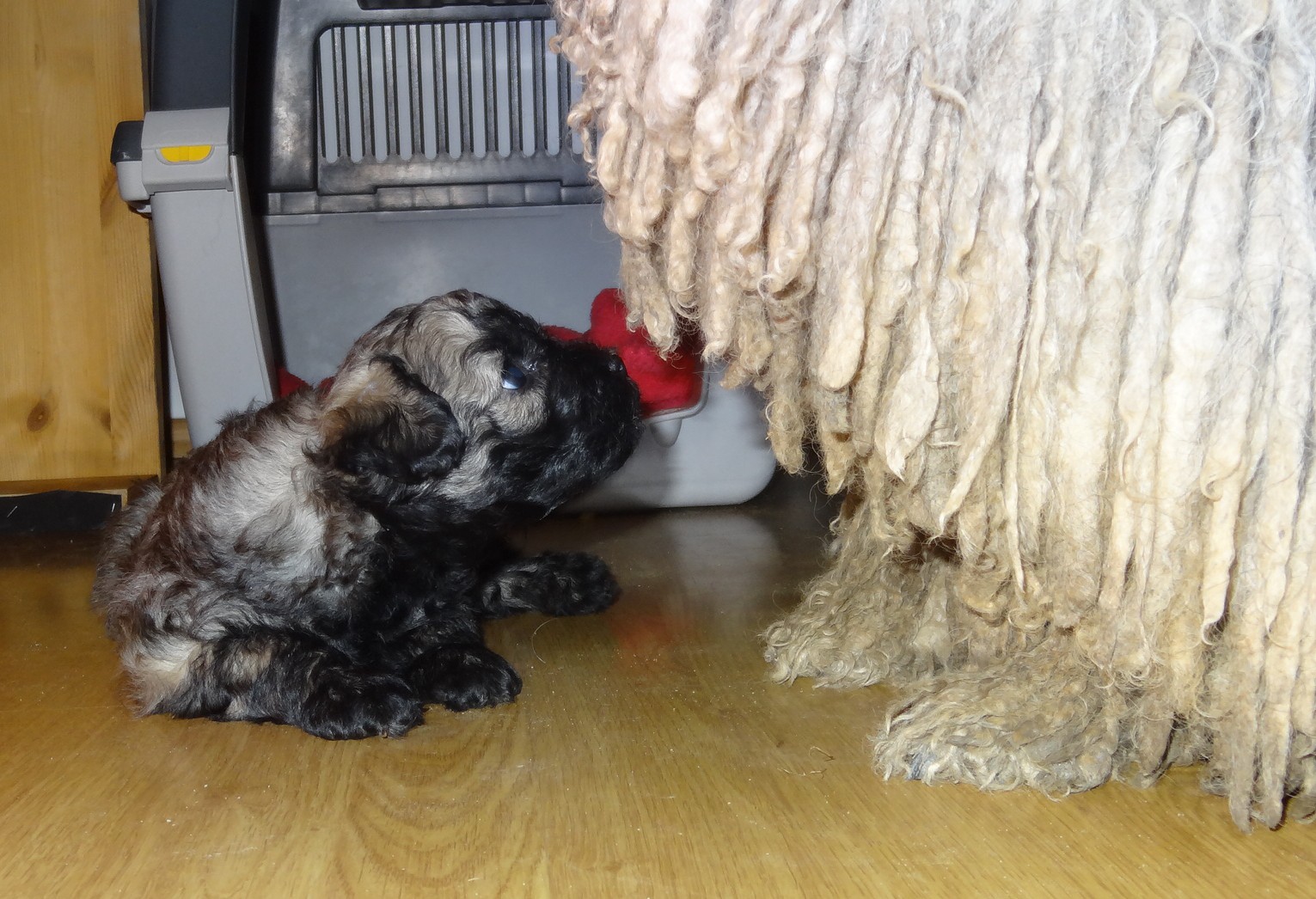 Zum anderen hat uns der Peppi – ein wunderschöner gaanz großer Mann – mit seinem Frauchen besucht. Peppi möchte unbedingt einen neuen Spielkameraden haben und musste uns natürlich auch genau anschauen – prüfen, ob denn „Was Geeignetes“ dabei ist. Und es hat gar nicht lange gedauert und Peppi und Frauchen waren sich einig: Anoki ist genau der richtige Freund fürs Leben! Die zwei werden sicherlich viel Spaß zusammen haben. Mal schauen, wer wen erzieht, denn der kleine Anoki hat die Beiden jetzt schon um die Pfote gewickelt.