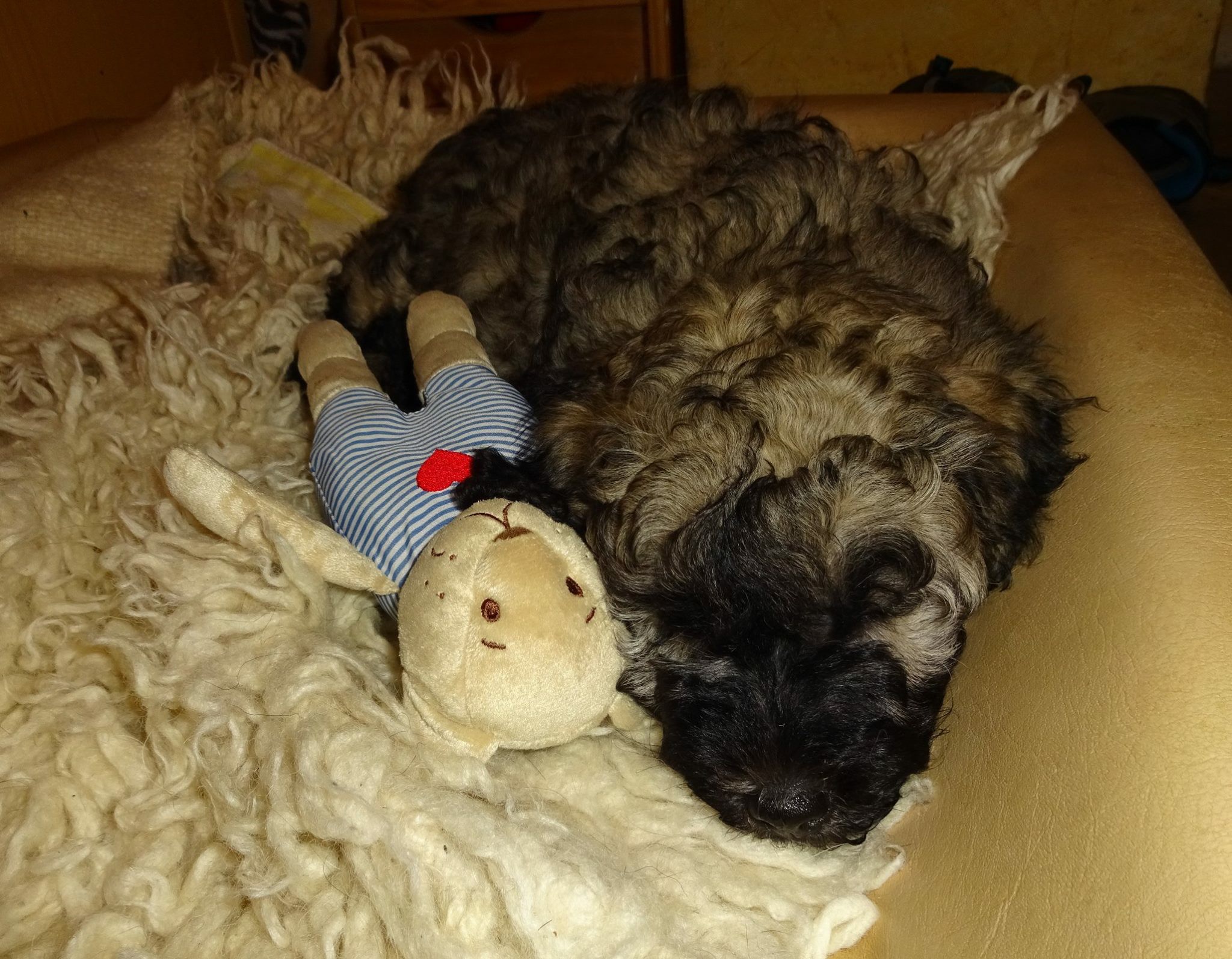 Nach fast verschlafenen Fahrt hat der Kimi sich im neuen Zuhause zuerst entspannt umgeschaut und die Party mit Peppi fortgesetzt. Zwischendurch mal kurz Frische-Luft-Schnappen im Garten, die Katzen inspizieren – und für interessant befinden- und dann die Party weitermachen. Aber irgendwann wird offensichtlich auch ein kleiner Kimi ganz müde.