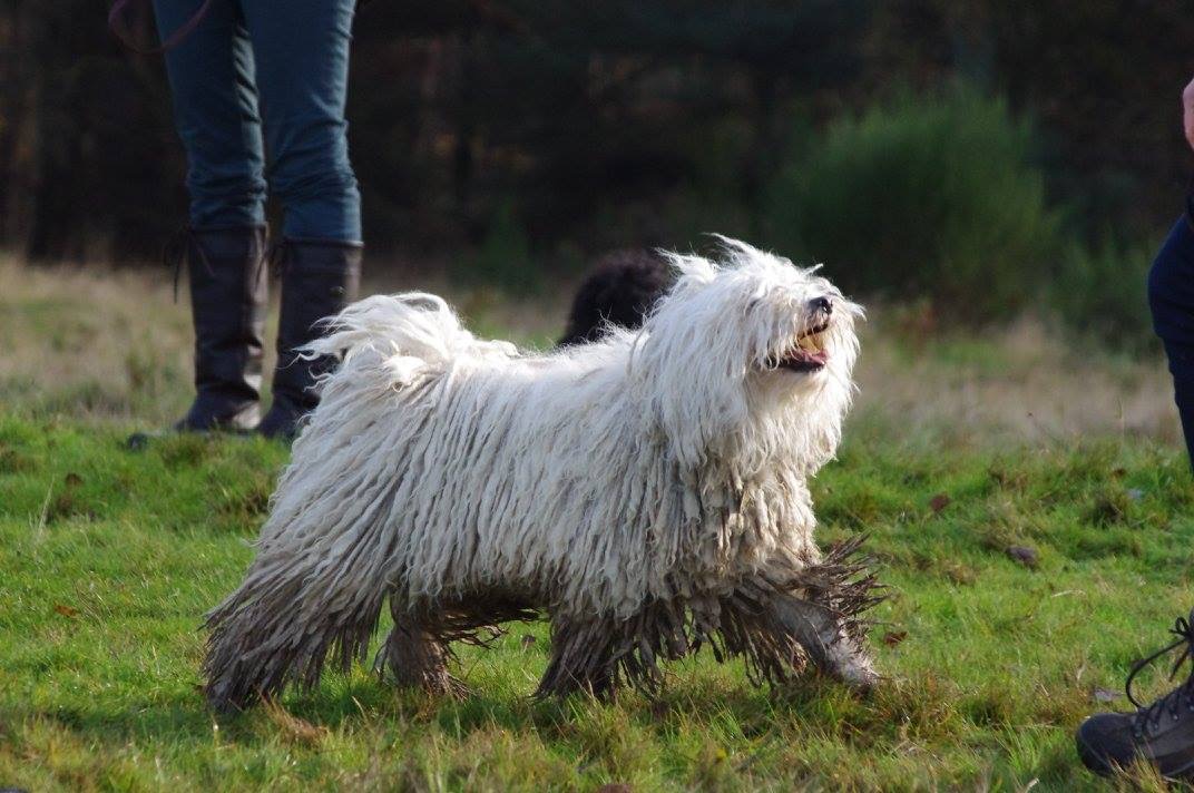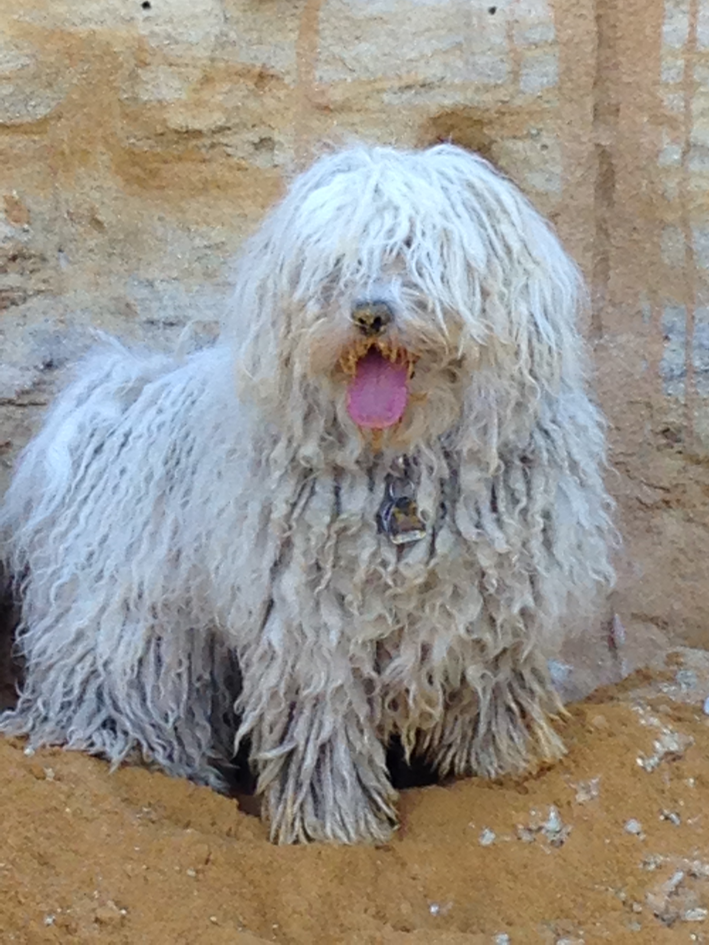 Ob wir sie jemahls wieder ganz weiß bekommen – wir glauben nicht mehr dran. Auf der letzten Ausstellung kam vom Richter die Ansage: „Die müssen sie weiß pudern!“ (In unseren Augen ist der Puli aber ein Arbeitshund und keine Ausstellungsdiva!!)