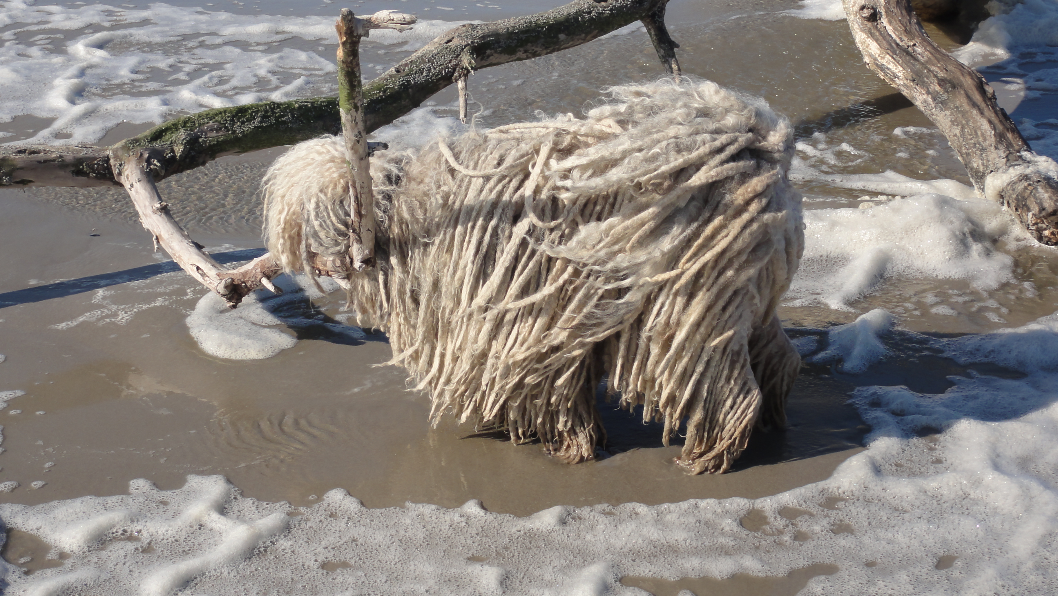 Typisch Östereichisch-Ungarische Prinzessin! Jede Pfütze wird fein säuberlich umgangen. Oder wenn sich dann beim spazieren gehen doch mal ein Zweiglein in den Zotten verfängt, bleibt sie stehen und wartet, bis Herrchen oder Frauchen es entfernt.